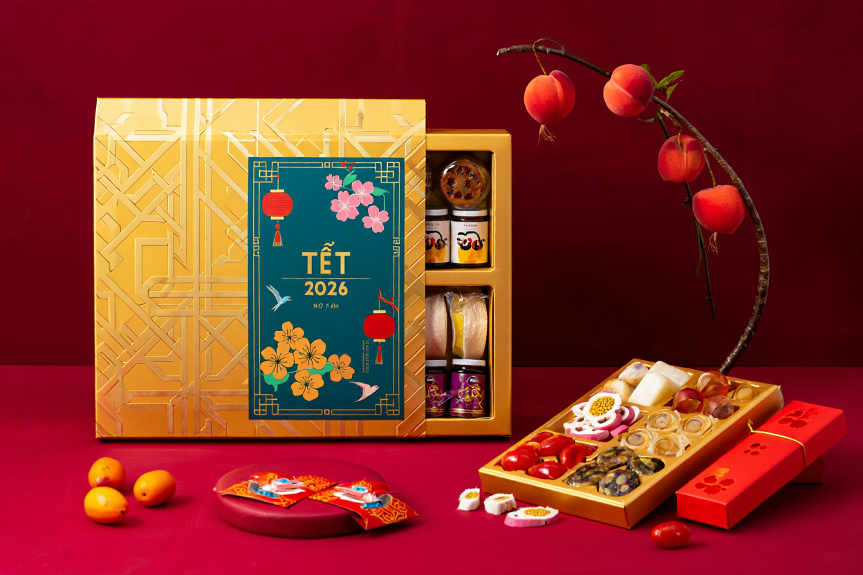 Trong bối cảnh cạnh tranh khốc liệt trên thị trường quà Tết, việc bắt kịp xu hướng bao bì Tết 2026 chính là chìa khóa để doanh nghiệp nâng tầm thương hiệu. Một thiết kế sang trọng, tinh tế và cá nhân hóa sẽ giúp doanh nghiệp ghi dấu ấn trong lòng khách hàng, đối tác.